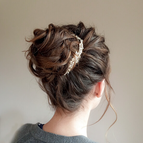 Společenský účes, strukturovaný drdol, nízký drdol, drdol dlouhé vlasy, svatební účes, účes na ples